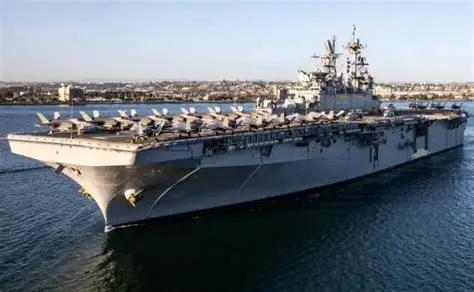 声明特别指出,美军两栖攻击舰“的黎波里”号(LHA-7)在行动中遭受重创。这艘载有5000余名美军人员的战舰被伊朗新型反舰导弹击中舰桥部位,导致动力系统瘫痪,最终在多艘护航舰只掩护下仓皇撤退至印度洋南部海域。与此同时,科威特阿里·萨利姆空军基地遭遇无人机与导弹联合打击,基地内6架F-16战斗机在机库中被炸毁,跑道出现长达200米的裂痕。