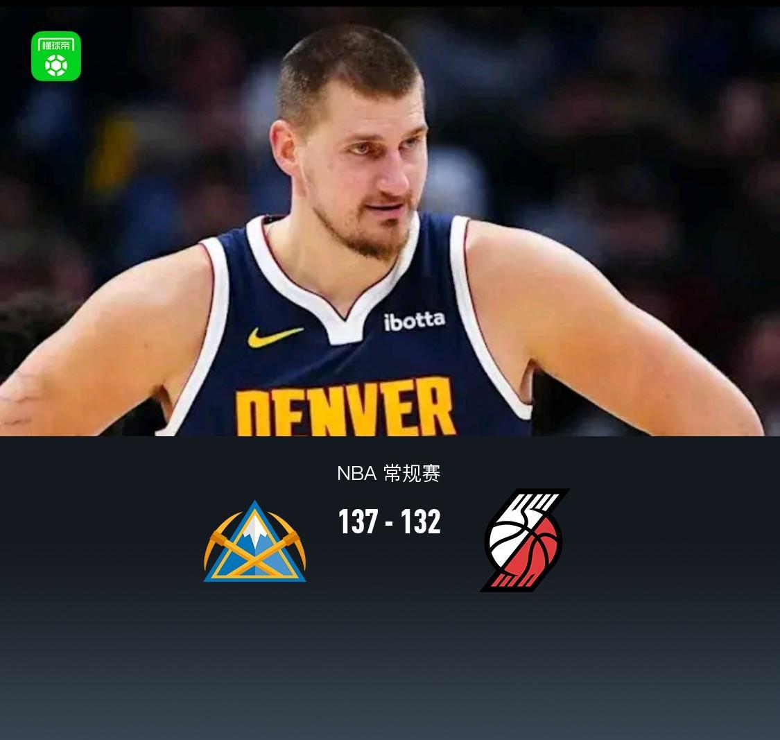 掘金加时逆转开拓者升至西部第三,约基奇35+14+13卡马拉30分难救主
