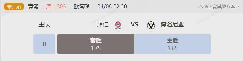欧篮联赛事前瞻:拜仁慕尼黑VS博洛尼亚(周二303场次)