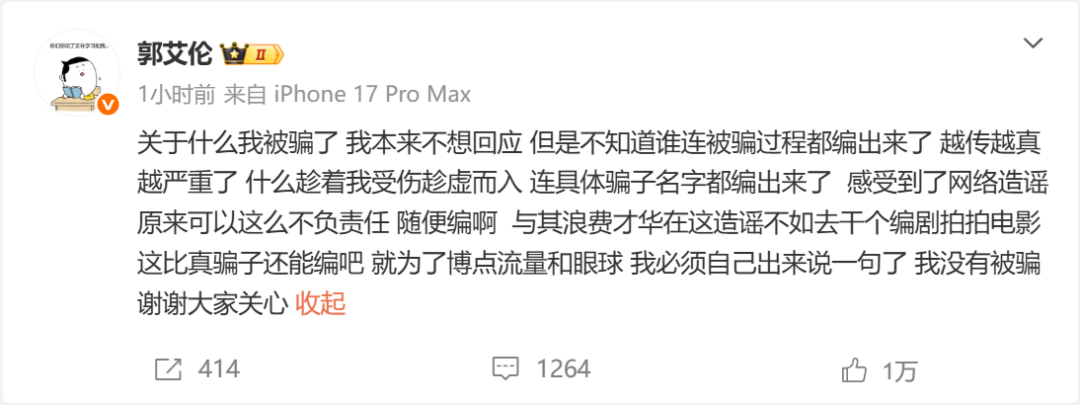 郭艾伦正式回应千万诈骗传闻:纯属子虚乌有