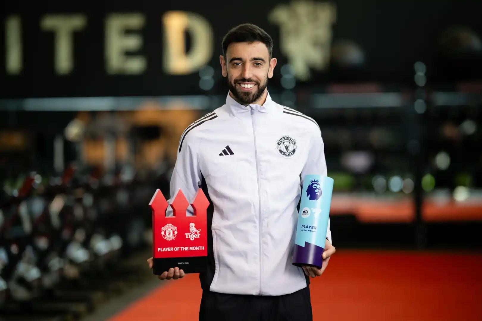 在荣膺英超三月份最佳球员殊荣后,曼联核心中场布鲁诺-费尔南德斯通过俱乐部官方渠道分享了获奖感言。