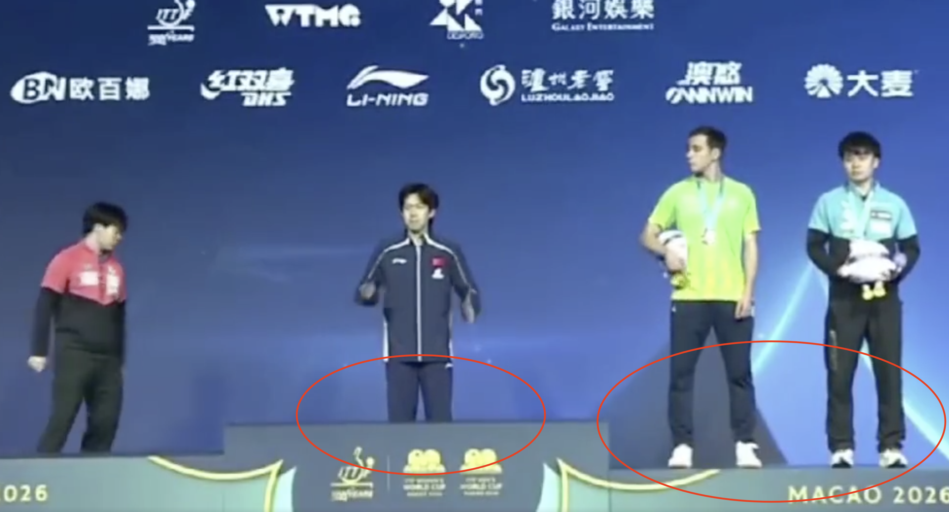 随后,松岛辉空开始登台。他特意从领奖台后方绕了一圈,走到雨果和林昀儒面前,与他们一一握手致意。接着,松岛辉空从领奖台前走过,直接跳过了王楚钦,登上了银牌得主的领奖台位置。