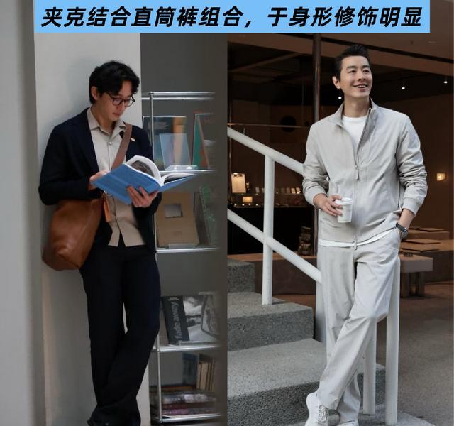 关键就在于——夹克搭配直筒裤,这一组合成功让大叔们摆脱了以往可能存在的油腻感。