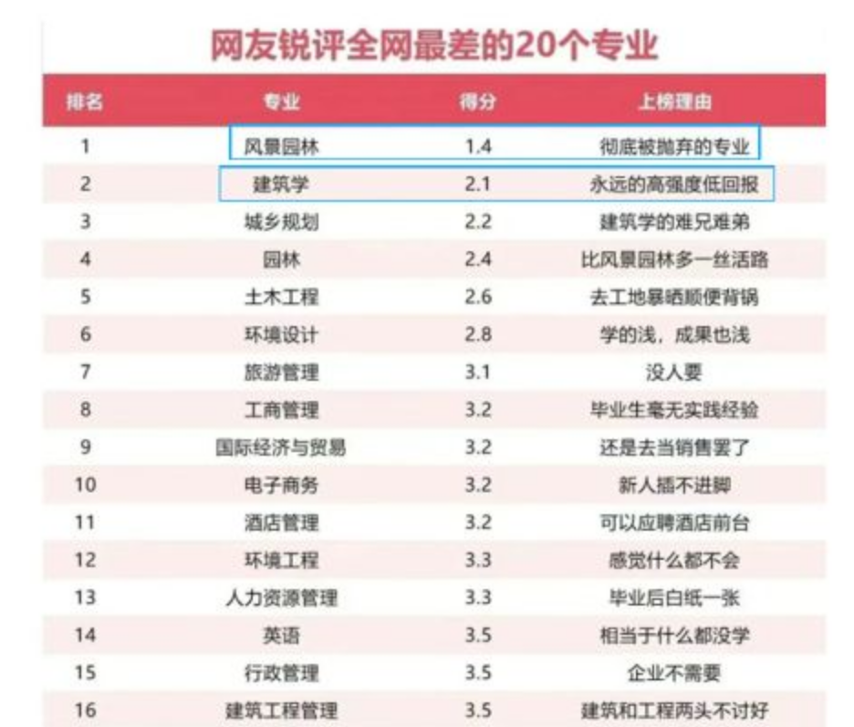 然而,除了土木和建筑学,还有几个专业的就业形势甚至更为严峻,它们分别是风景园林、工程管理以及小语种专业。