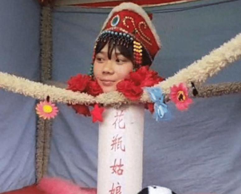 另外,还有一种说法也流传甚广。有人说,姑娘是练了一种奇门功夫——缩骨功,能够把自己的整个身子缩成一团,然后塞进小小的花瓶里,不表演的时候就可以出来自由活动。不少人真的相信了她有这样的真本事,看完表演后,还会跟旁边的人夸赞半天。这三种说法越传越广,花瓶姑娘的热度也越来越高,骗子们早就赚得盆满钵满。