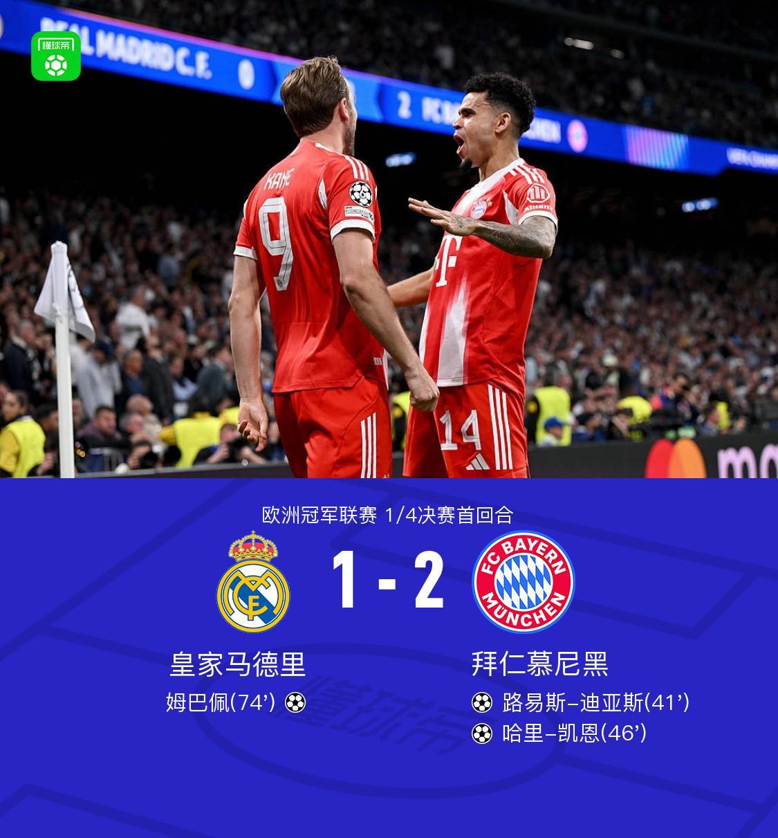 北京时间4月8日,欧洲冠军联赛1/4决赛首回合迎来一场焦点对决,皇家马德里与拜仁慕尼黑展开激烈交锋。在这场备受瞩目的比赛中,皇家马德里的姆巴佩成功破门,而拜仁慕尼黑的路易斯 - 迪亚斯和哈里 - 凯恩也各自建功。最终,皇马1-2不敌拜仁,遗憾落败。