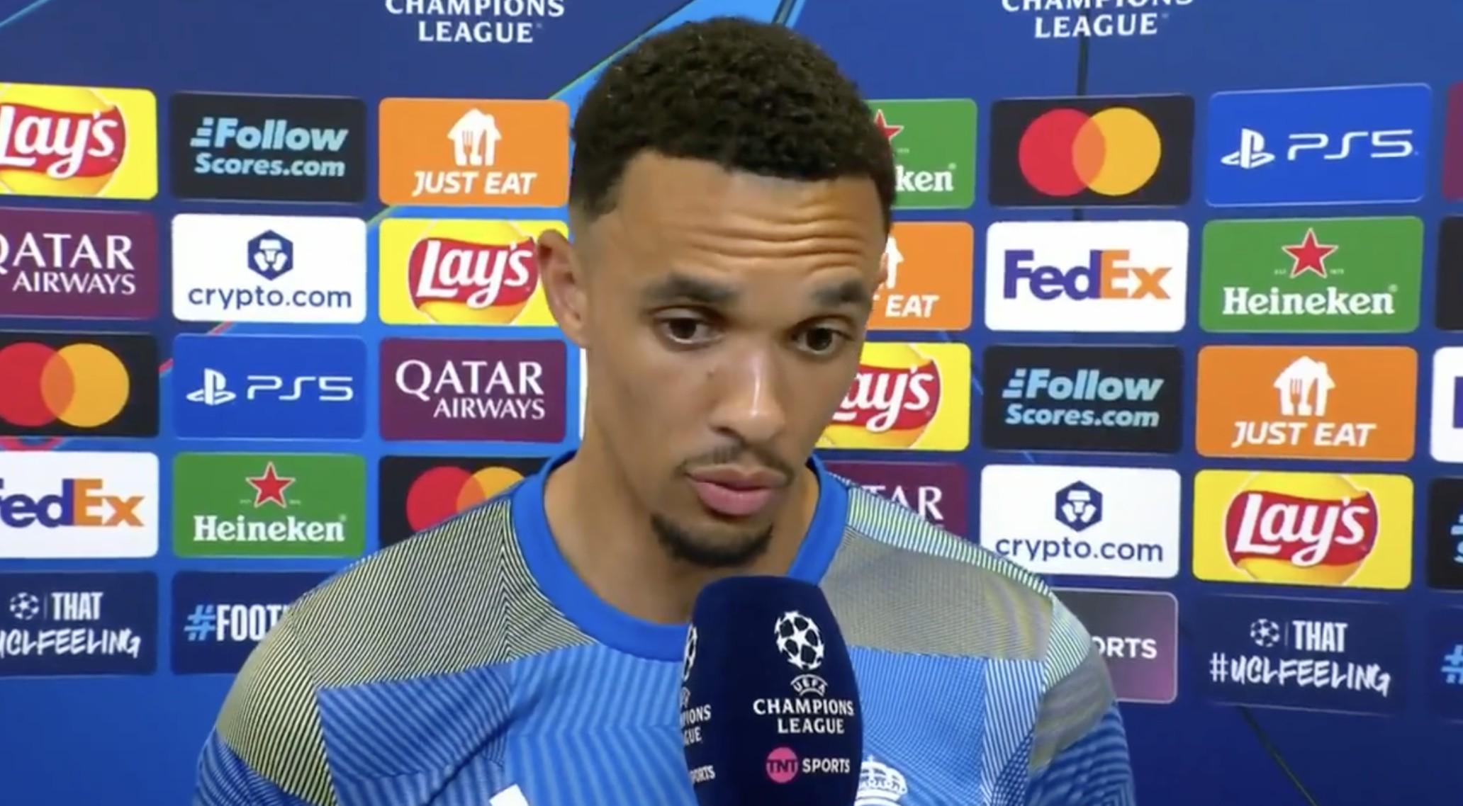 当被问及那脚堪称完美的助攻传球时,阿诺德露出了自信的微笑。