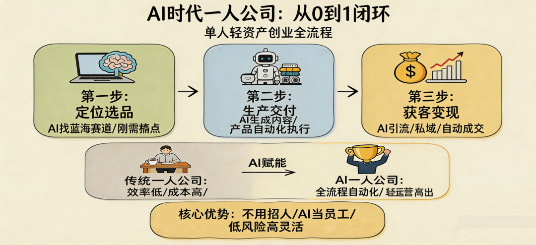 传统创业模式门槛极高,租办公室、招聘员工、购买设备、进行推广等,尚未见到收入,几十万资金便已消耗殆尽,普通人根本不敢轻易尝试。而AI一人公司则彻底颠覆了重资产创业模式,实现了极致轻量化,使创业成为人人皆可参与的选择。