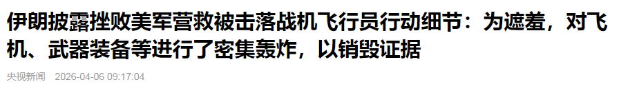 全球主要媒体均证实美军成功救出了飞行员,而革命卫队却声称"救援失败"——这大概率是革命卫队说给伊朗国内民众听的。
