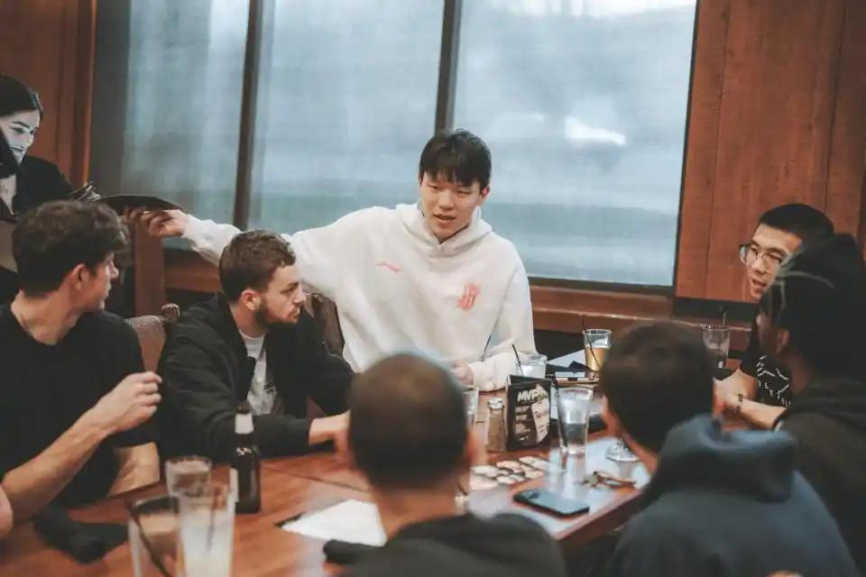 北京时间4月8日,NBA赛场上中国球员的焦点人物杨瀚森再度传来新动态。当日,波特兰开拓者队官方社交媒体发布消息,透露杨瀚森近日邀请G联赛混音队的全体队友及教练团队共进晚餐。聚餐现场气氛热烈,杨瀚森身着一袭白色连帽衫,与队友们围坐在长条桌旁,时而亲切握手,时而开怀畅谈,欢声笑语不断。开拓者官方微博也同步分享了聚餐照片,并配文道:场上并肩作战,场下情谊深厚!