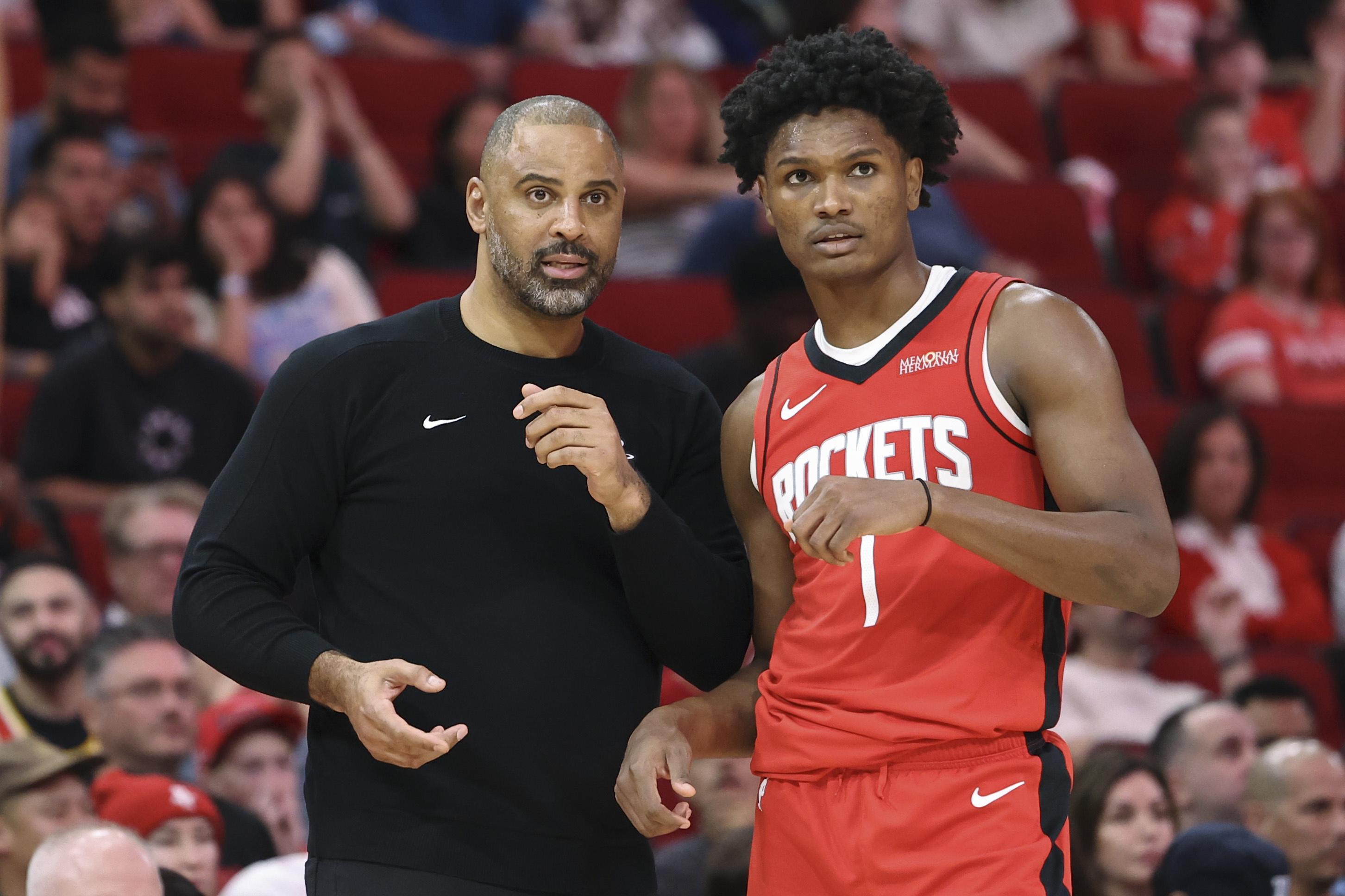 太阳队在进攻端主打一五号位挡拆点名申京,布克持球投效率不错。然而,申京防挡拆不佳的问题被太阳队针对。火箭队主教练乌度卡见状,对布克采取了挡拆后不换防包夹的策略。太阳队破包夹得心应手,无论是马威的内切还是古德温的外围空位三分,都让火箭队吃尽了苦头。太阳队早早打出了26:5的梦幻开局。