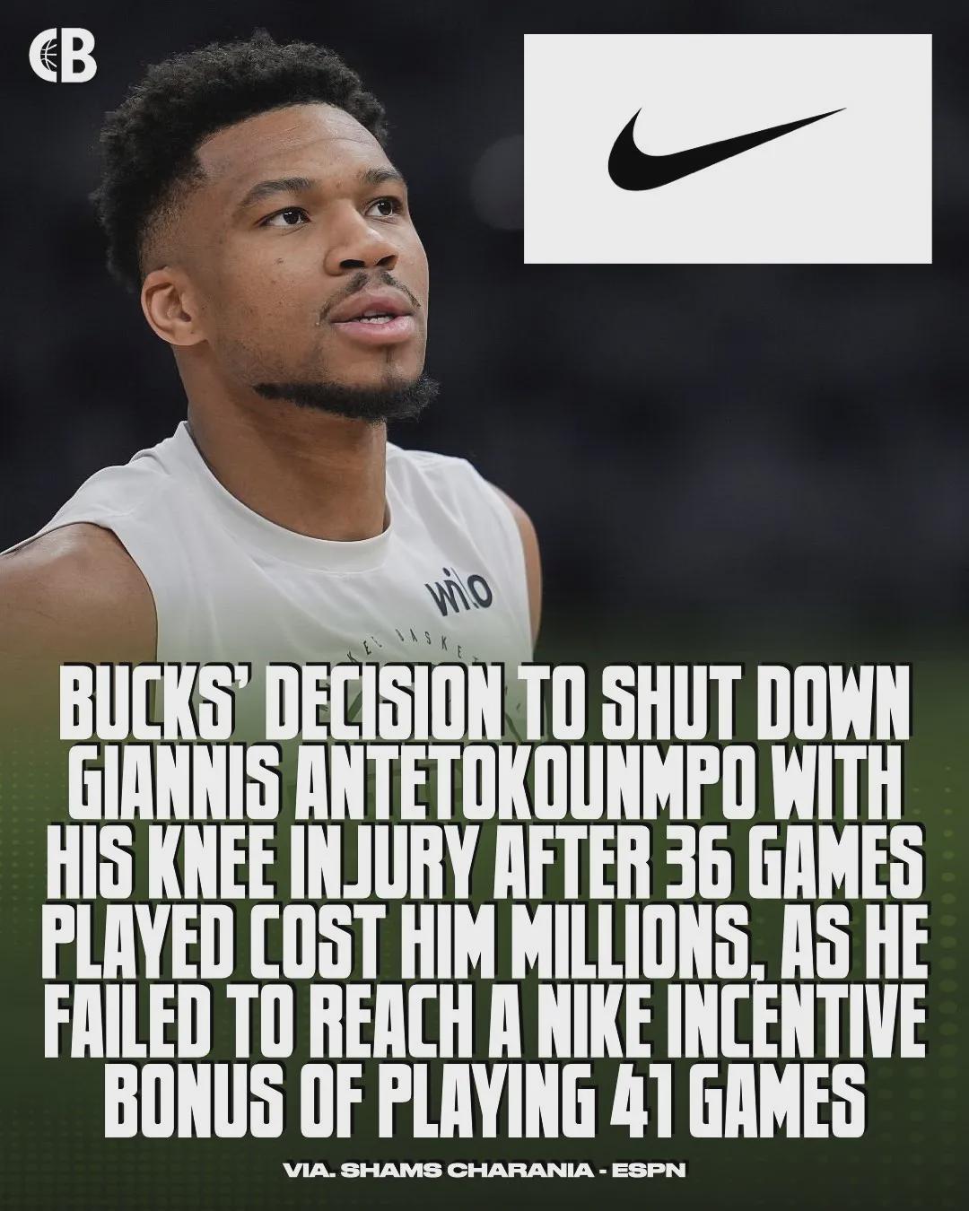 北京时间4月8日,据徽声在线资深记者Shams的独家深度报道,密尔沃基雄鹿队内部正经历着一场前所未有的风波。尽管雄鹿队早已无缘附加赛,但球队核心字母哥却强烈要求提前复出,这一举动让外界颇感意外。经过深入调查,Shams揭露了背后的原因:原来,字母哥与耐克的合同中有一项明确条款,即他必须单赛季出战超过41场才能获得全额奖金。