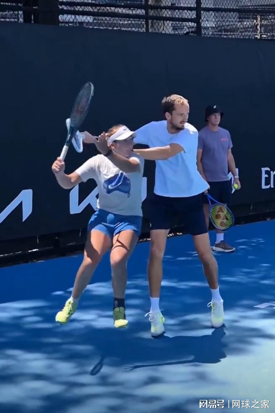 近期,海外网球爱好者将俄罗斯新锐选手安德列娃与男子网坛顶尖选手梅德韦杰夫的正手击球动作进行对比分析,这一视频在社交平台引发广泛讨论。通过慢动作回放可以清晰观察到,两位选手在技术细节上存在显著差异,这种差异背后折射出网球运动技术演进的深层逻辑。