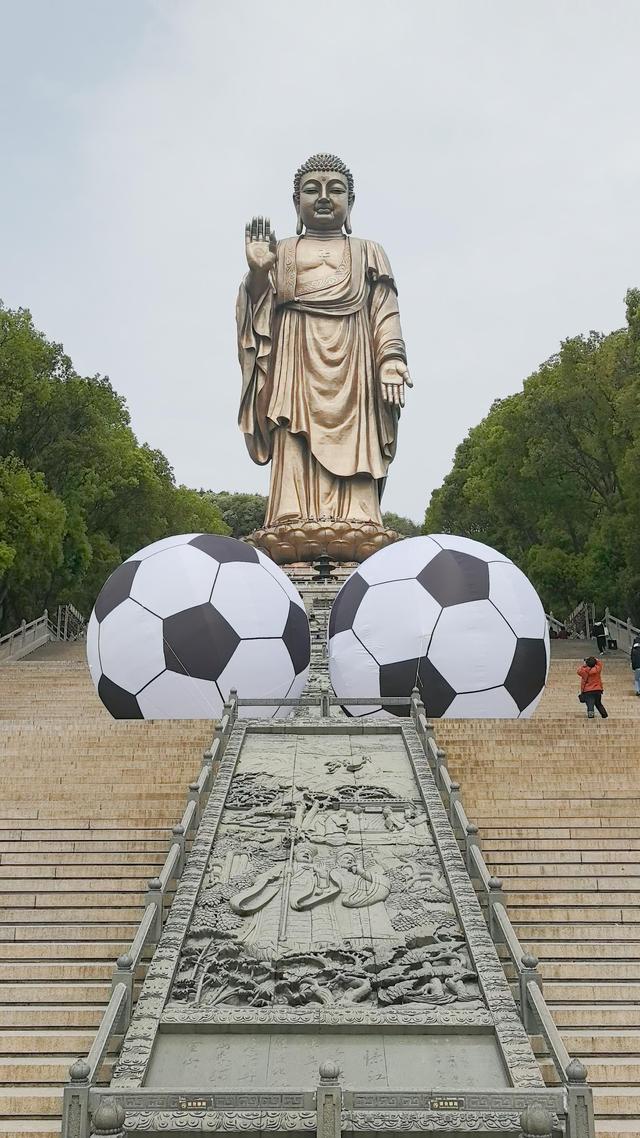 据一位不愿透露姓名的知情人士介绍,4月7日的时候,灵山脚下只摆放了一个足球气模,到了8日就增加到了两个。而且据说,4月9日还会再出现一个足球气模,届时将有三个气模齐聚灵山。每个足球气模的直径都长达5米,远远望去,十分壮观。不少网友纷纷猜测,这是寓意着“连中三元”,为无锡队迎战镇江队全力造势,想要续写“灵山很灵”的赛场传奇呢!