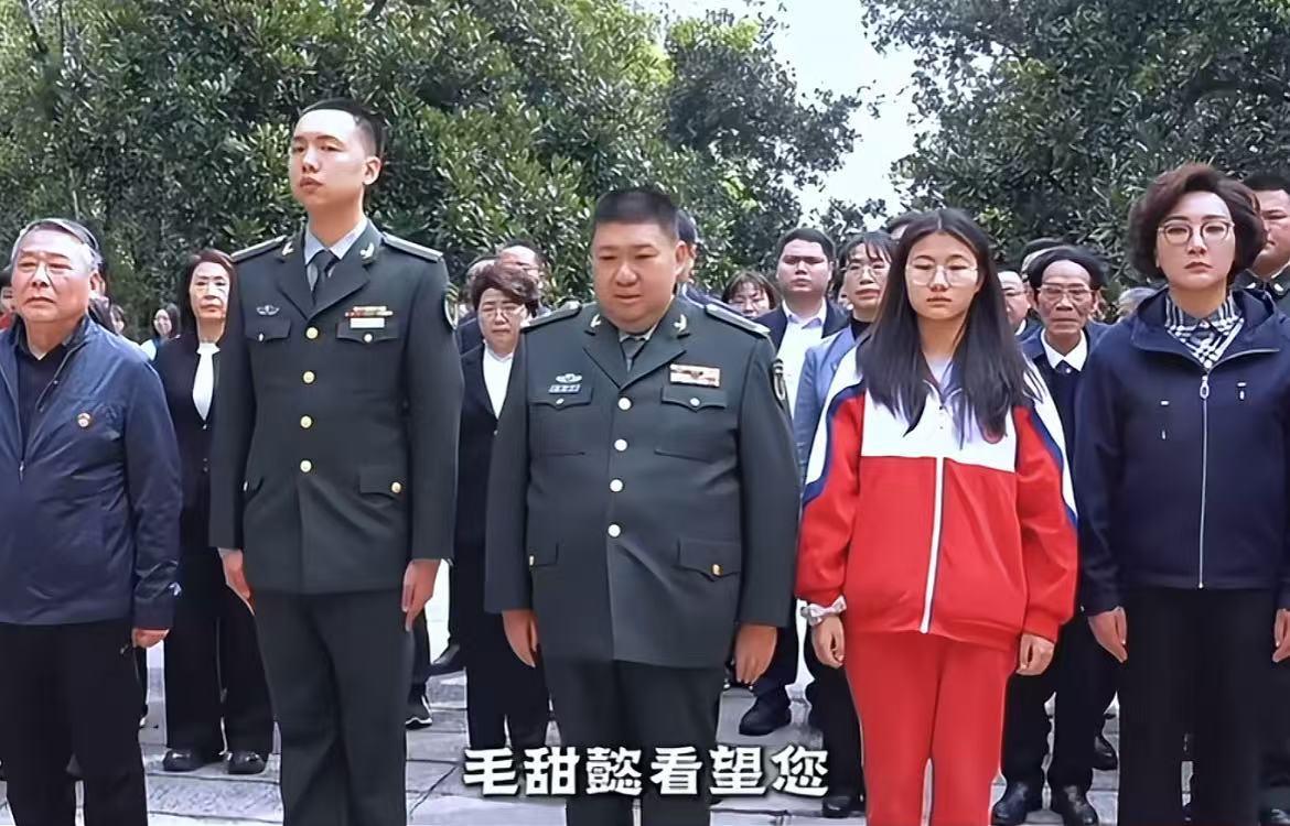 女儿毛甜懿,身着蓝白相间的校服,安静地观察着周围的一切。这位18岁的少女,在钢琴键上能够奏出澎湃激昂的乐章,展现出了卓越的艺术天赋。然而此刻,她却以最安静的姿态,静静地接收着来自家族历史的精神滋养。她的在场,象征着这个家庭对下一代全面发展的期许,既希望孩子们在艺术情操方面得到陶冶,又注重革命传统的浸润,让红色基因在下一代身上继续传承。