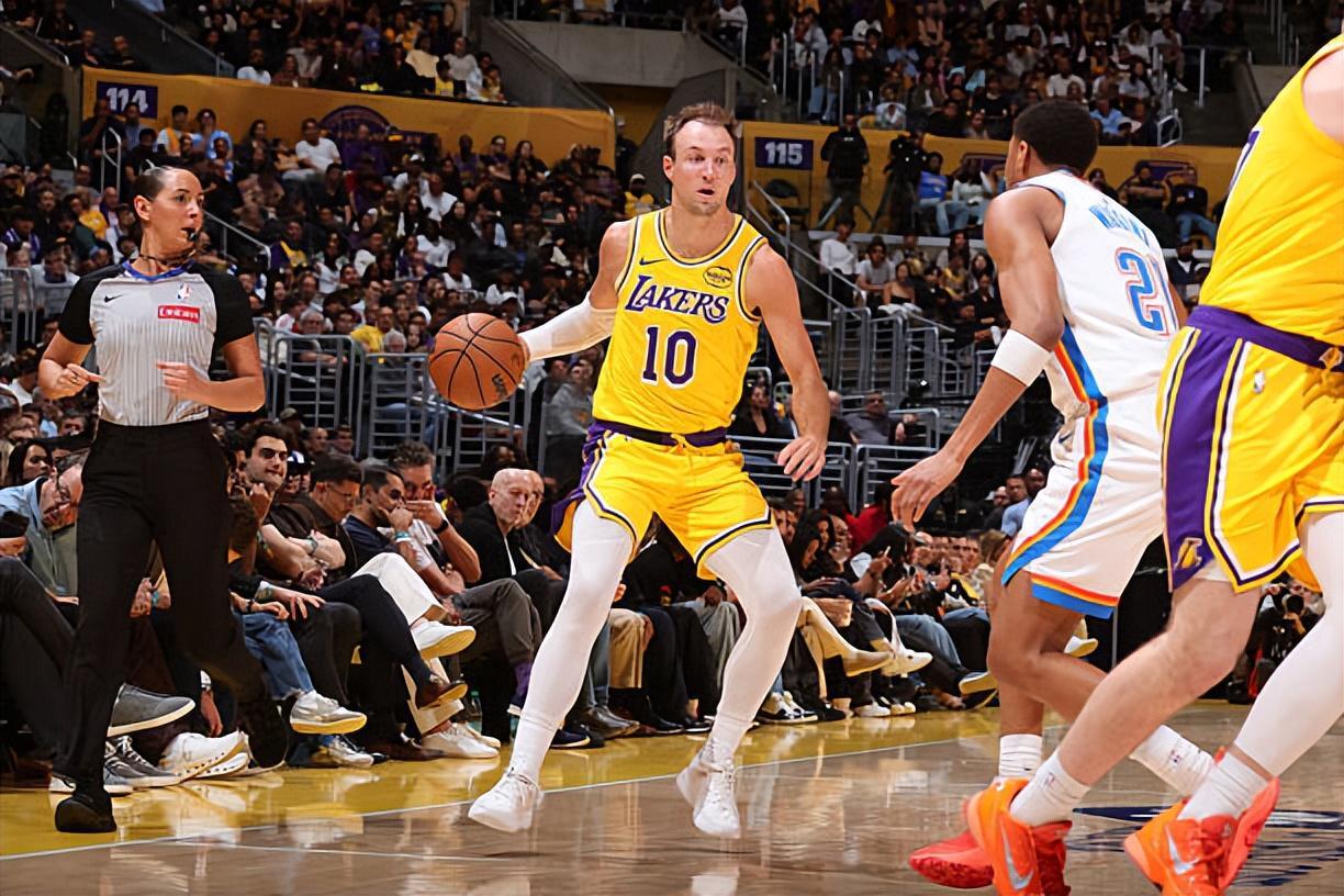 在这场比赛中,湖人队的先发控卫卢克-肯纳德(Luke Kennard)的表现可圈可点,尽管球队最终失利,但他的努力不容忽视。肯纳德全场出战23分10秒,投篮7次命中4球,尽管三分线外2次出手均未命中,但他通过罚球3中2,还是得到了10分,并贡献了2个篮板、9次助攻和1次抢断,正负值为-23。在进攻端,肯纳德虽然外线手感不佳,但依旧展现出了不俗的得分能力,为球队贡献了宝贵的分数。同时,他在传球和组织方面也展现出了高超的技艺,多次为队友创造得分机会。然而,肯纳德并非以防守见长的球员,在对手强大的攻势下,他在防守端确实难以发挥更大的作用。但无论如何,肯纳德在这场比赛中的表现已经足够尽力,也在进攻端起到了积极的效果。只是球队其他球员的表现不尽如人意,整体实力与对手存在明显差距,这使得肯纳德也难以独自扭转战局。