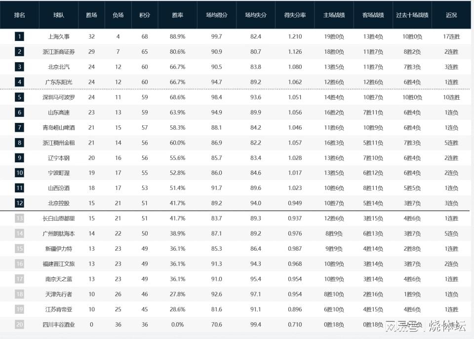 CBA最新积分榜动态