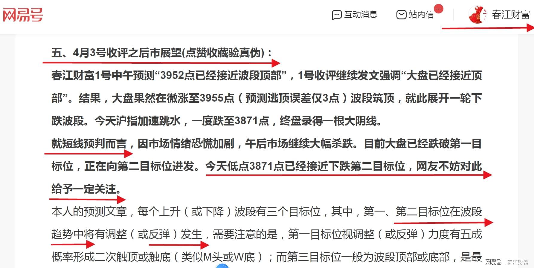 精准预测,下跌第二目标位分毫不差!(文末附图,敬请比对)回顾上周五,即4月3日的收评,我们明确指出,受市场恐慌情绪加剧影响,节前市场或将持续大幅下挫。当前,大盘已跌破第一支撑位,正朝着第二目标位逼近。特别值得注意的是,3871点这一低点,与我们所预测的下跌第二目标位几乎完全吻合,网友们不妨对此给予高度关注。