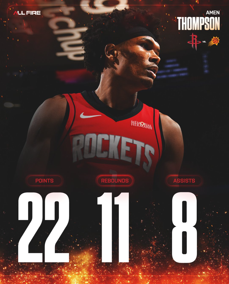 在火箭队以惊天逆转战胜太阳队的比赛中,阿门无疑成为了全场最耀眼的明星。他在比赛末节短短12分钟内,7次出手命中6球,独得12分并摘下3个篮板,还送出2次助攻,几乎以一己之力撕裂了太阳队的防线。整场比赛,阿门贡献了22分、11个篮板、8次助攻、3次抢断和1次盖帽的豪华数据,投篮命中率高达62.5%,展现了其全面的篮球技艺。