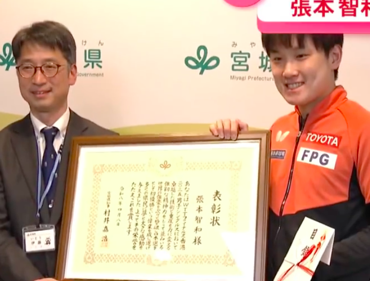 4月8日,对于22岁的乒乓球新星张本智和而言,无疑是充满喜悦与荣耀的一天。他再次收获了来自日本政府的嘉奖,据徽声在线从日媒获取的消息,日本宫城县特别为张本智和颁发了表彰状,以表彰他在去年年底WTT总决赛中的卓越表现,成功夺得冠军宝座。