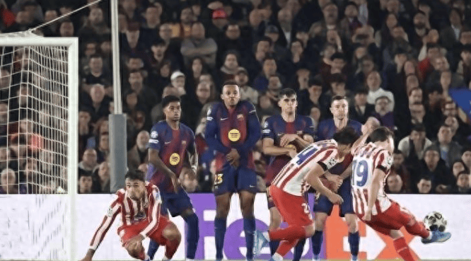仅仅一分钟后,阿尔瓦雷斯站在了任意球点前。他踢出的一脚弧线球巧妙地绕过了人墙,直挂球门死角,1:0!这是马竞20年来首次在诺坎普球场取得胜利,终结了此前25场不胜的尴尬纪录(其中8平17负)。阿尔瓦雷斯本赛季在欧冠赛场上已经打入了9球,超越了迭戈·科斯塔保持了12年的马竞单赛季进球纪录。