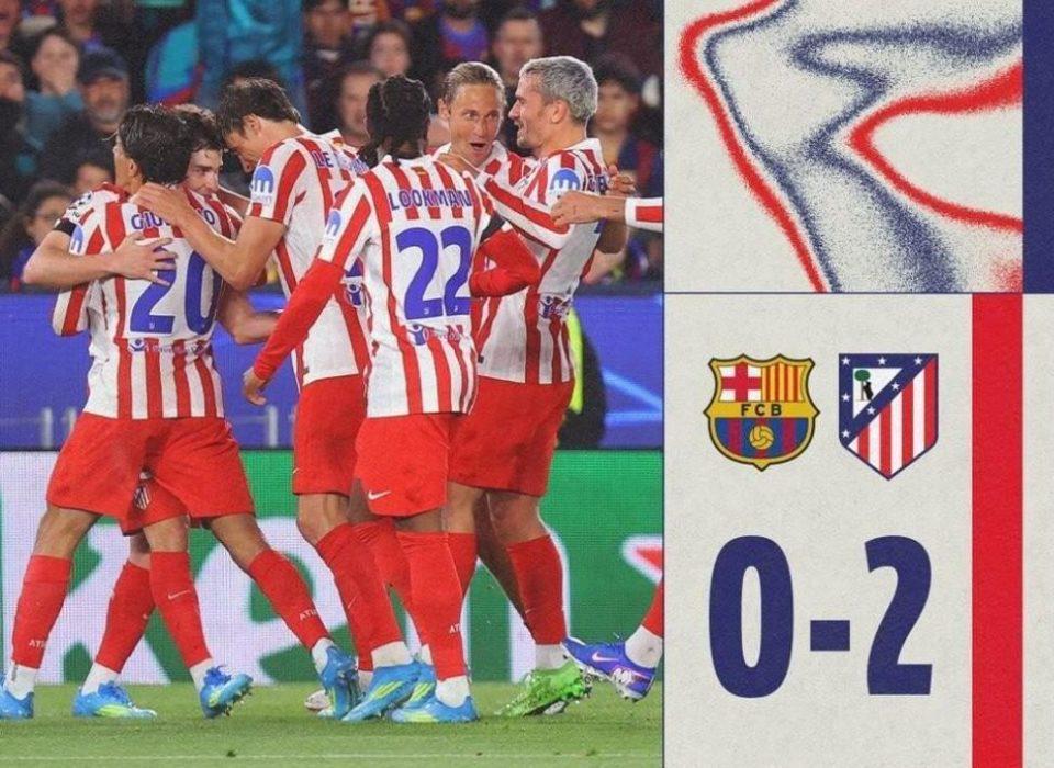 20年魔咒终破!马竞客场2-0完胜巴萨 欧冠晋级形势一边倒