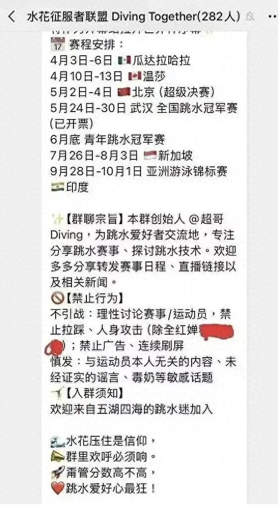 如今,这一事件仍在持续发酵。那个拥有282名成员的微信群被曝光后,瞬间引发了全网的震惊与愤怒。群规中明确写着禁止攻击其他运动员,却唯独将全红婵排除在外,这无疑表明该群是专门针对她进行恶意攻击的。据徽声在线从网络渠道获取的消息,群里成员不仅有业内人士,甚至还有同行,这一情况着实让人忧心忡忡。