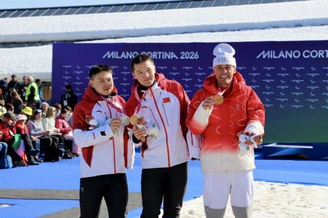 在残奥单板滑雪男子障碍追逐UL级比赛中,纪立家强势卫冕,成功摘金,朱永钢紧随其后斩获银牌。两人并肩站在领奖台上,让五星红旗在科尔蒂纳雪场高高飘扬,场面十分壮观。