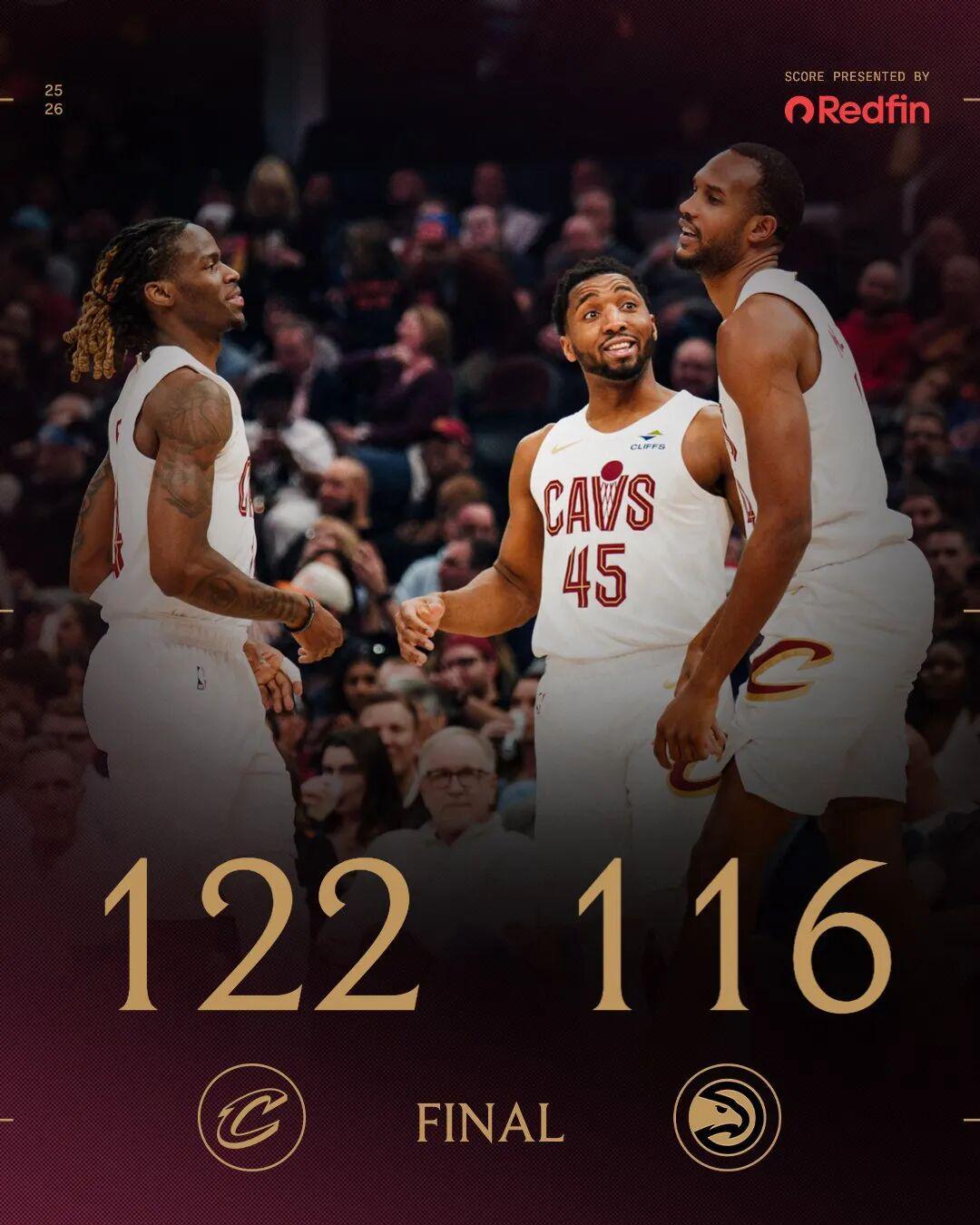 在常规赛的一场焦点对决中,骑士队坐镇主场以122-116力克老鹰队。