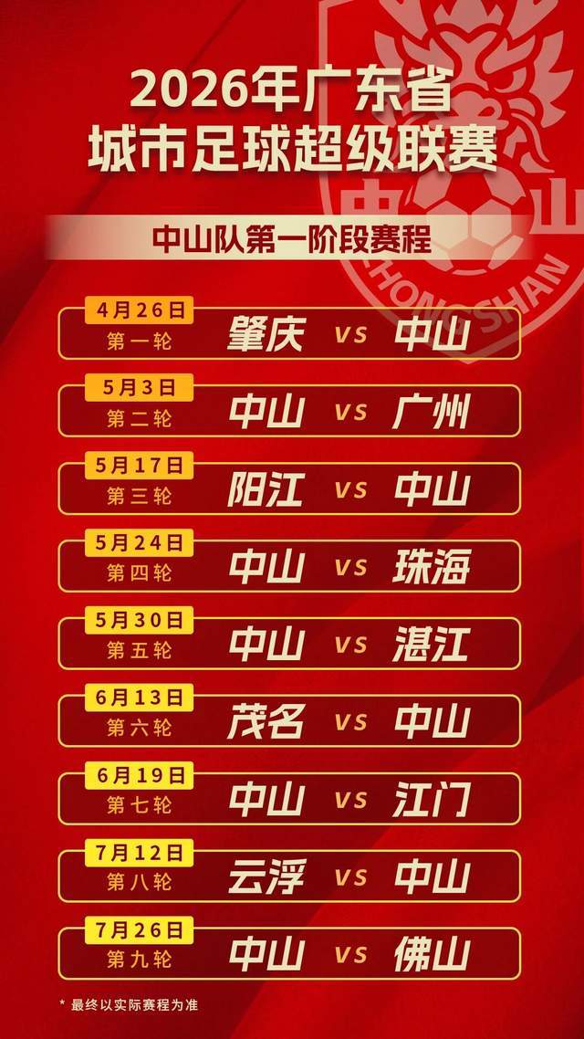 2026粤超联赛赛程公布!中山队4月26日首战肇庆队,购票指南速看