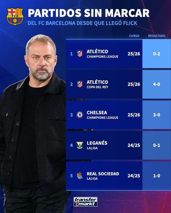 弗里克执掌巴萨期间被零封的赛事回顾(按时间从近到远排列):