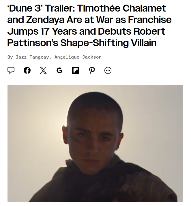 科幻巨制《沙丘3》首支预告震撼发布,引发全球影迷狂热期待