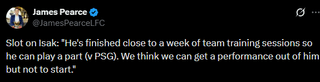 利物浦主帅豪赌:伊萨克带伤战巴黎,四个月休战后直接上场