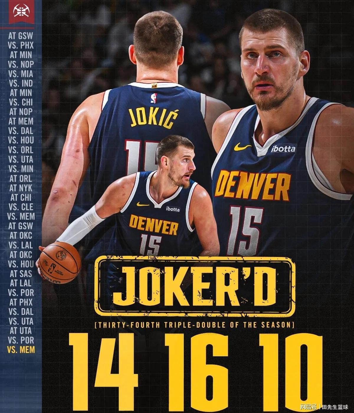 佛系超巨再显神威!约基奇8次出手轻松三双,掘金豪取10连胜创生涯新纪录