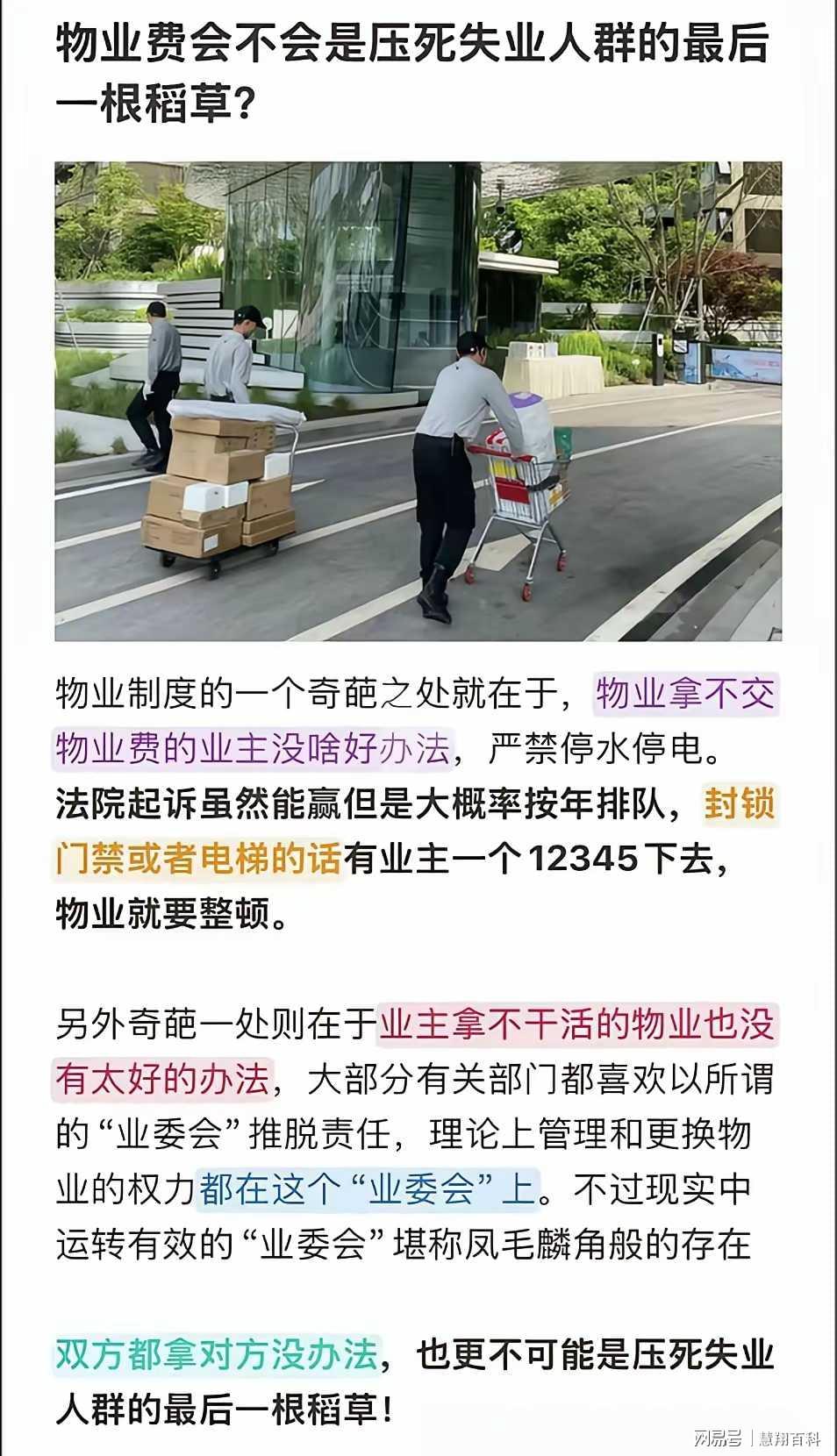 更令人感到绝望的是,物业费的收取制度似乎设计得极为精妙,精妙到让人不禁怀疑,它是否就是针对人们最困难的时候,再给予致命一击而制定的。