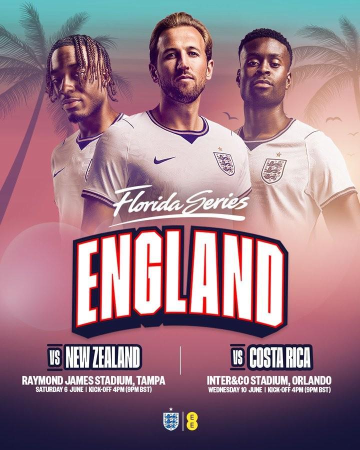英格兰队6月初美国热身赛程公布:对阵新西兰与哥斯达黎加