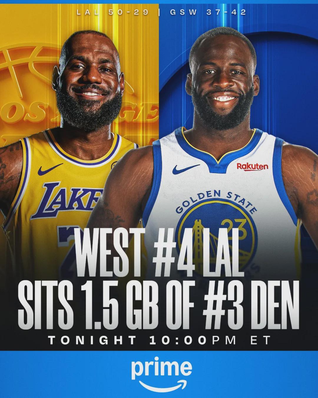 库里缺阵!詹姆斯爆发力克勇士,湖人重夺西部第四宝座