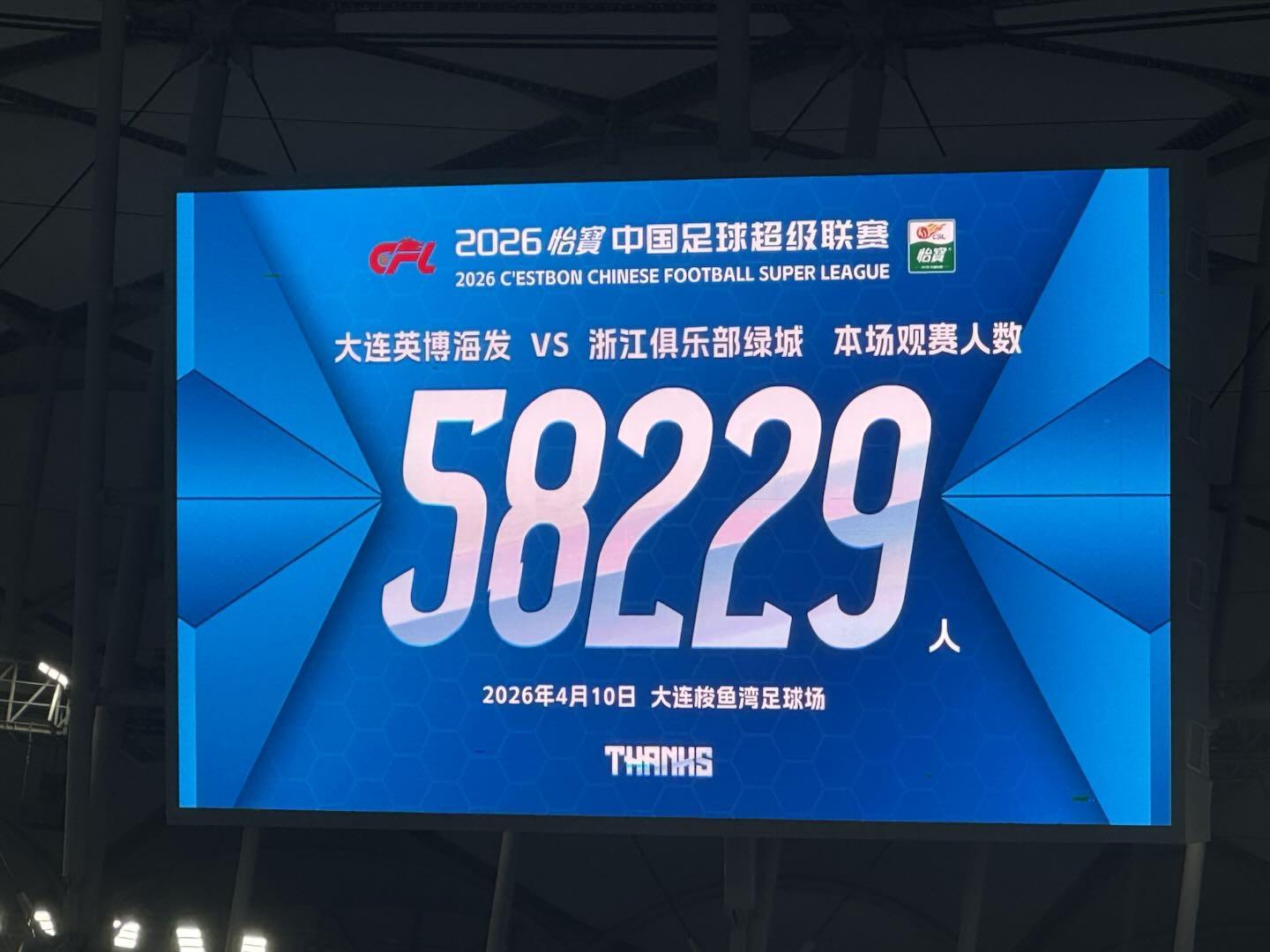 大连英博3-0胜浙江,58229人现场助威创中超历史第19佳绩