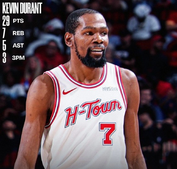 4月10日,在一场备受瞩目的对决中,火箭队以113比102力克76人队,豪取赛季八连胜的佳绩。此役,杜兰特展现出了非凡的竞技状态,全场出战37分钟,高效砍下29分,并摘下7个篮板,送出5次助攻,成为球队获胜的关键人物。