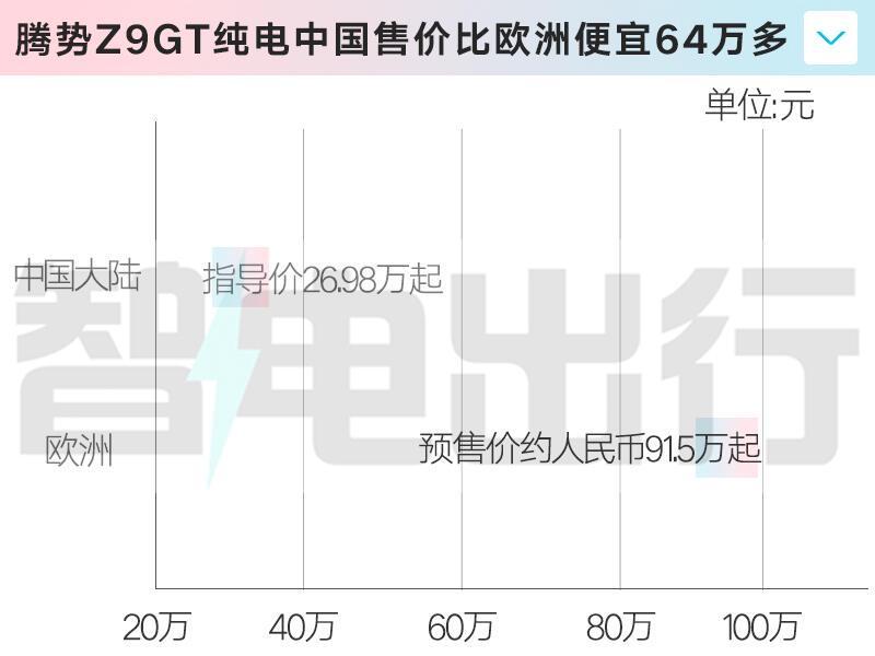 令人惊讶的是,在国内市场仅售20多万元的腾势Z9GT,在欧洲市场的起售价竟然飙升至10.35万欧元,折合人民币高达82.4万元,这一价格差异引发了广泛关注。