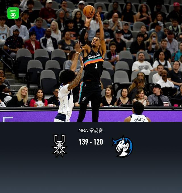 马刺139-120大胜独行侠,文班亚马狂轰40+13+5,弗拉格难救主