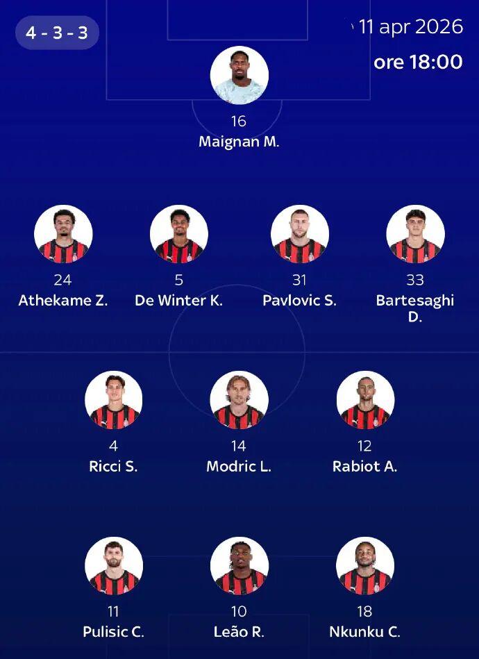 北京时间4月12日凌晨0点整,意甲联赛将迎来第32轮的焦点对决,AC米兰坐镇圣西罗球场迎战乌迪内斯。赛前,意大利权威体育媒体天空体育基于球队现状与战术需求,对红黑军团本场可能派出的首发阵容进行了专业预测。