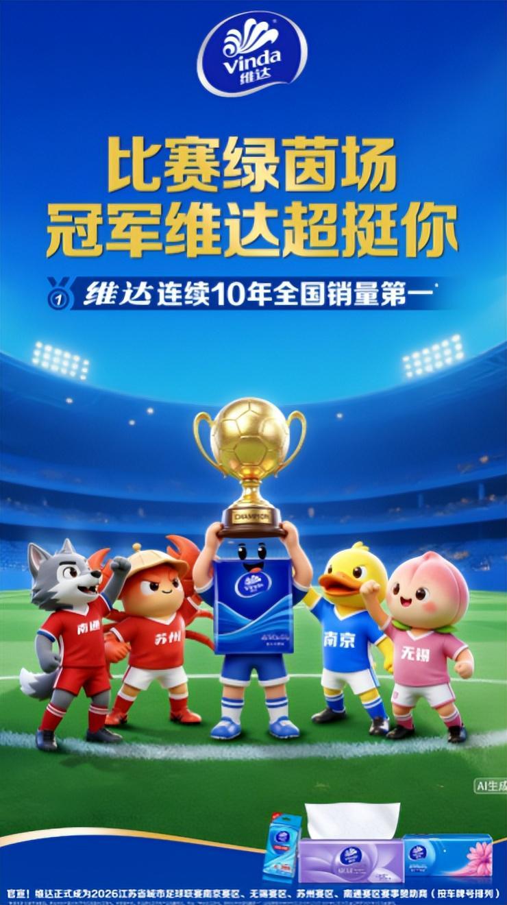 4月8日,国内生活用纸行业的领军品牌维达正式宣布,将再次携手备受瞩目的全民足球盛宴——江苏省城市足球联赛(简称“苏超”),成为2026赛季南京、无锡、苏州、南通四大赛区的官方赛事赞助商(赛区按车牌首字母排序)。