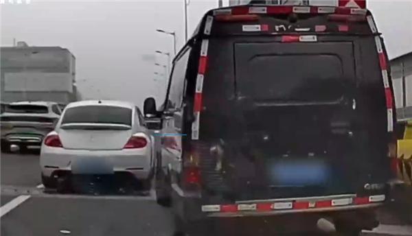 从现场画面可以清晰看到,当时道路上的车辆处于缓行状态。一辆白色轿车在直行车道上稳稳行驶,而黑色运钞车则位于右侧的匝道区域。当运钞车试图从匝道并入直行车道时,白色车主并未选择让行。随后,运钞车司机情绪失控,多次加速变道,不断穿插至白色车辆前方,进行别车操作。两车之间的距离极近,场面十分惊险,给道路交通安全带来了极大的隐患。