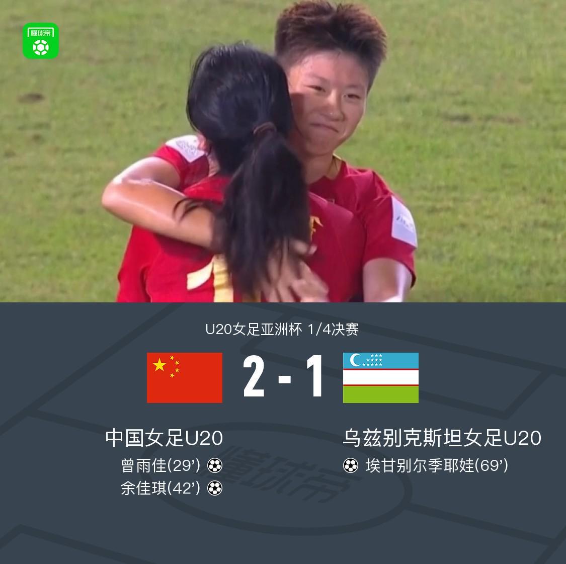 U20中国女足2-1力克乌兹女足U20,晋级世青赛余佳琪闪耀全场