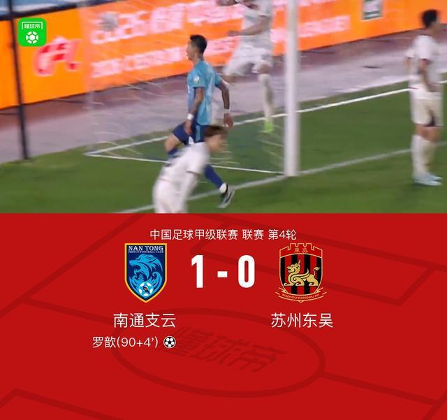 第90+4分钟,罗歆再次挺身而出,补射破门完成绝杀,南通支云1-0领先苏州东吴,全场沸腾
