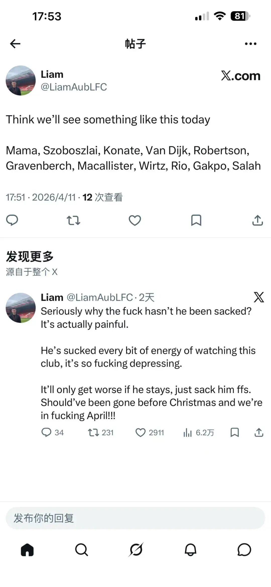 让我们先来瞧瞧首发哥Liam为我们带来的剧透版首发阵容: