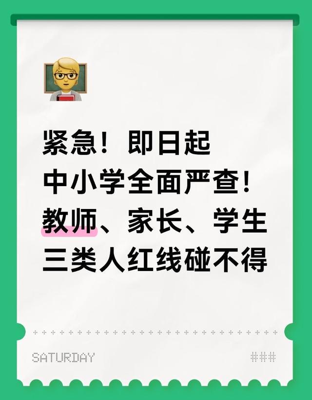 紧急行动!全国中小学即日起启动全面严查,教师、家长、学生三类人群红线不可触碰