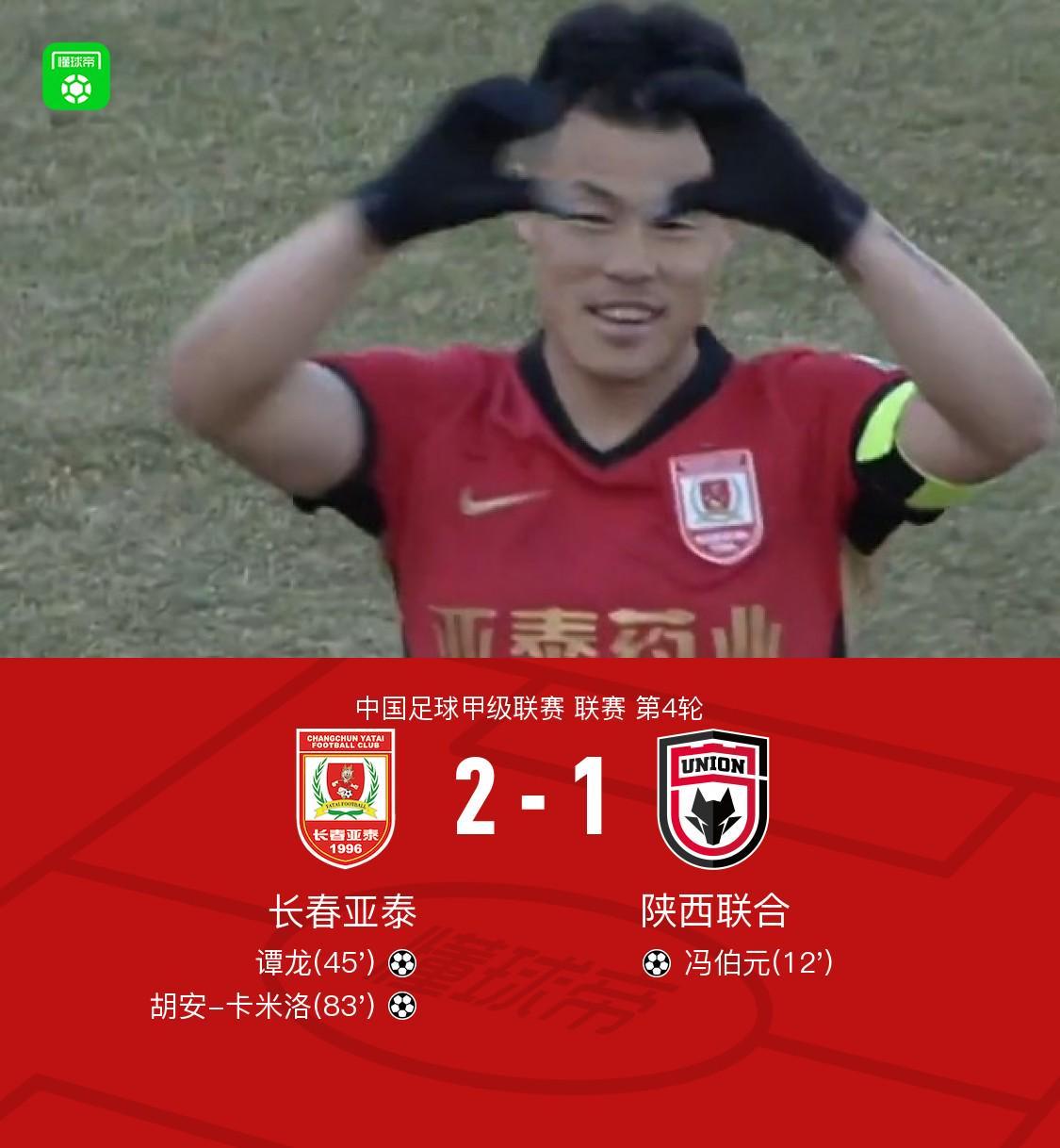 长春亚泰2-1力克陕西联合,谭龙破门成队史射手王,卡米洛绝杀