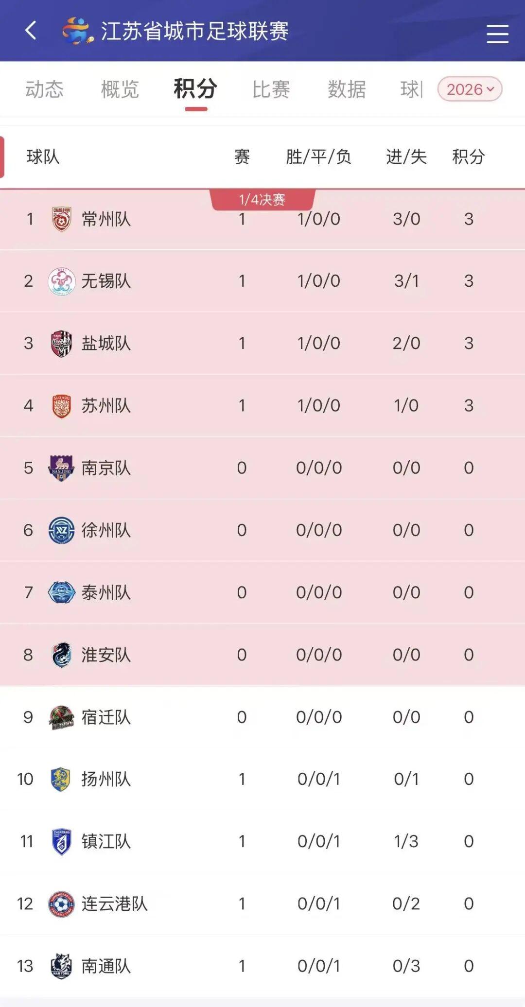 随着首周比赛的结束,"苏超"联赛的最新积分榜也火热出炉